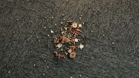 在实测环节,动点科技将测验场所挑选在了日常日子中清洁难度较高的地毯区域。将“尼龙原料的线头”、“小苏打粉”来别离模仿“毛发物”、“细密尘埃”;并额定调配了“干湿”(油性饼干碎屑、固体颗粒茶包)两种不同性状的食物残渣碎屑。